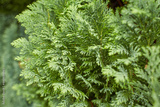 Close up view of cypress pine green leaves for Christmas or winter festive season. (Selective focus)
