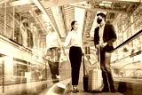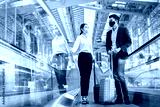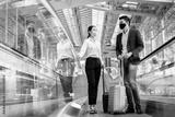 Business New normal concept.Businessman and woman wear face mask on escalator at terminal airport, New normal of people to awareness and protection for prevent coronavirus or covid-19 pandemic