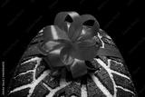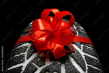 black isolation rubber tire, on the grey backgrounds in a bow for christmas