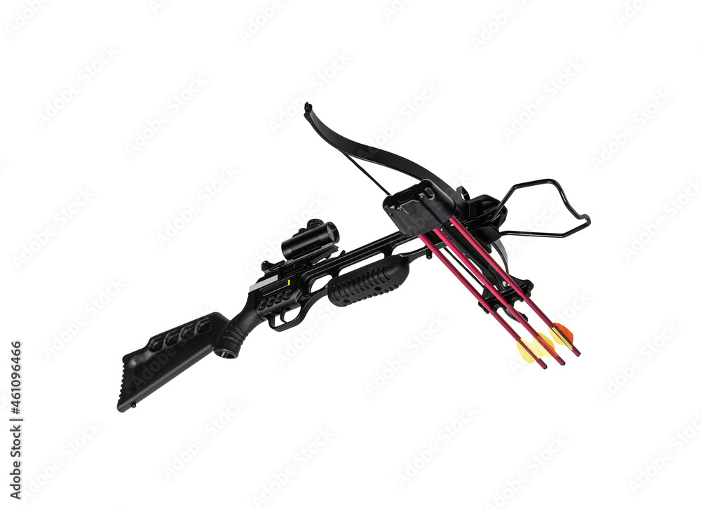 Modern crossbow. Quiet weapon for hunting, sports and recreation. Isolate on a white back