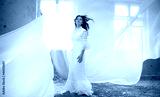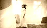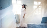 Young Woman in Fashion Shiny Dress, Lady in Flying Clothes, Girl under Star Light, Cloth Fluttering and Flowing