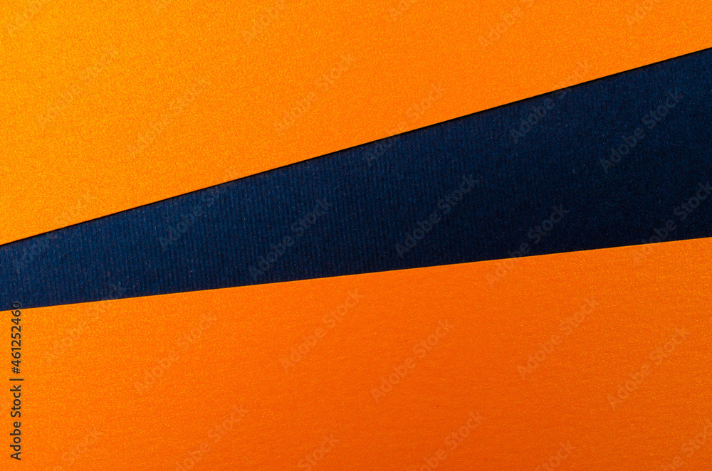 Blue and orange colors paper texture background. Place for text. Three tones. Background for presentation. Bright tone paper element