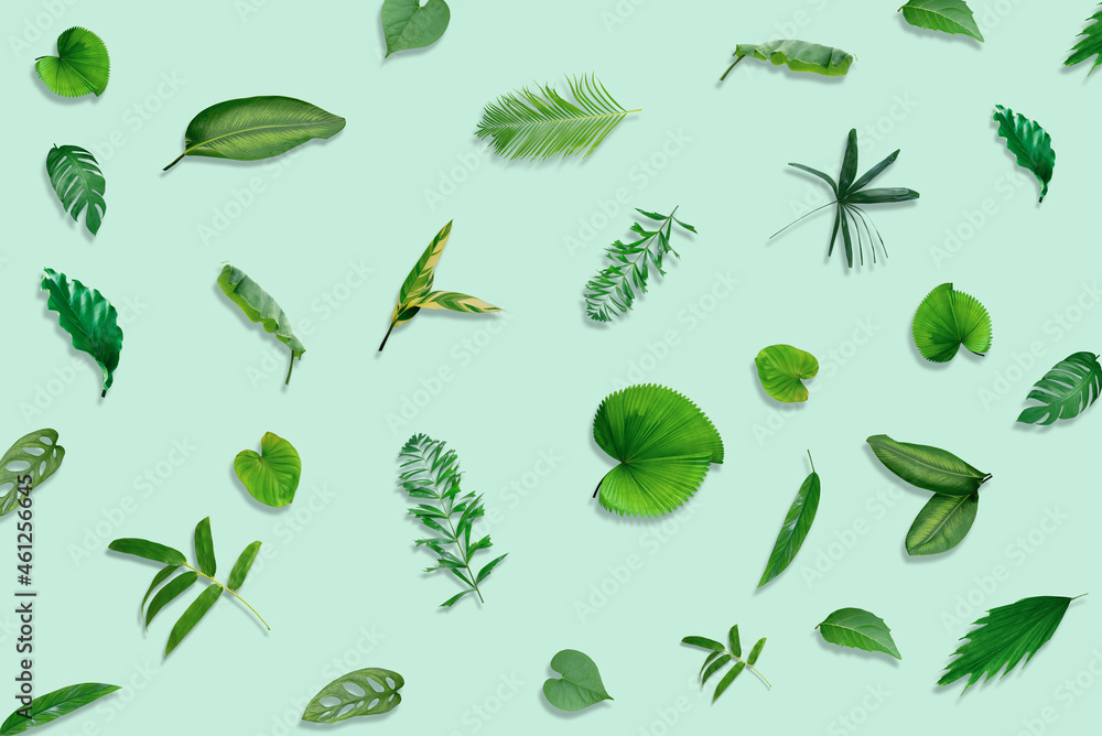 Creative layout made of tropic monstera leaves on pastel background. Minimal summer exotic concept with copy space. Tropical background.