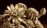 Red flowers from the cactus plant. cactus or cacti. Clump of cactus in a small pot. Greenhouses to raise plants in houses. shooting in the studio Black background.