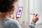 A woman records her basal temperature through her smart phone