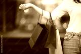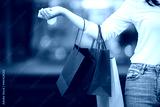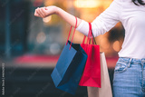 fashion shopping girl A young woman carries a colorful shopping bag as she walks along a shopping mall.