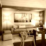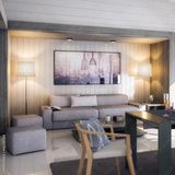 Modern Furnishings Inside an Attic Designed in White Wood (detail) - 3D Visualization