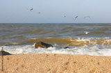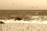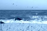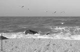 Beautiful seascape with beautiful sea waves and sea foam on shore with sea water on beach by sea