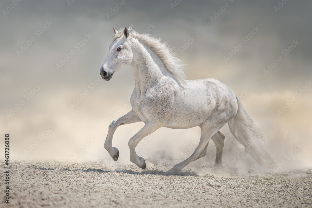 white horse running