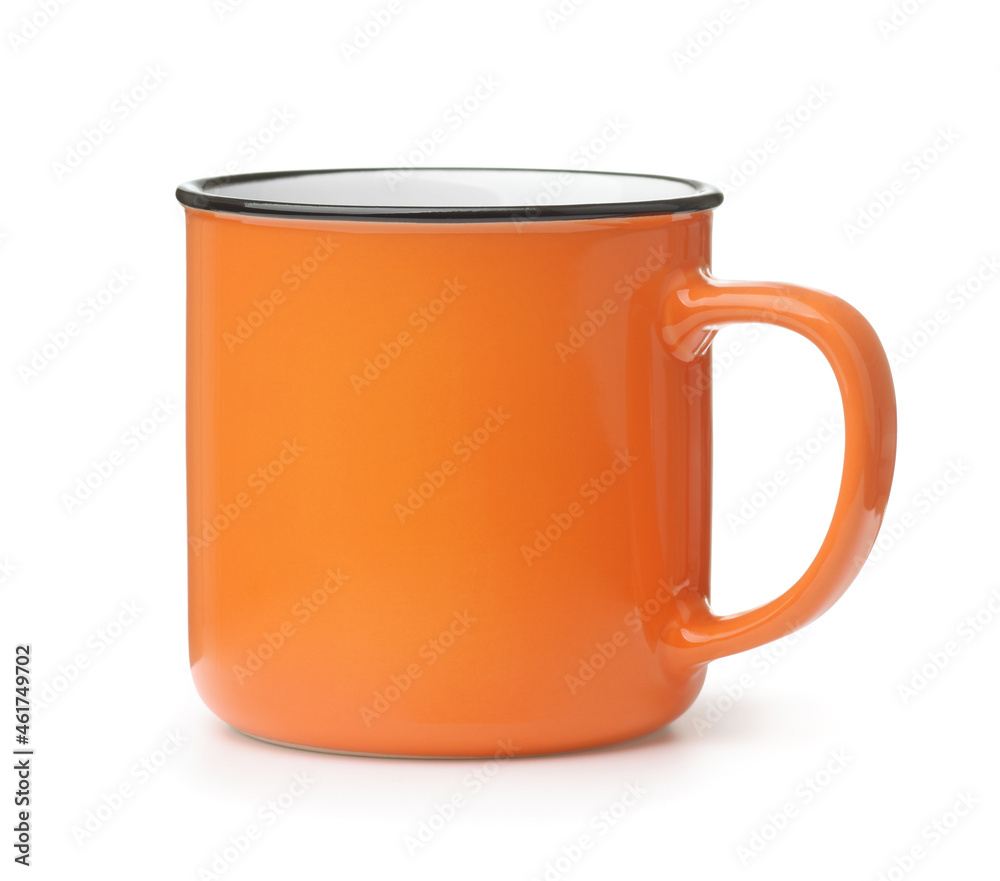 Side view of blank orange coffee mug