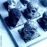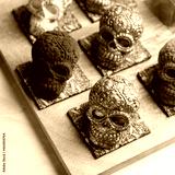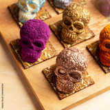 edible ornamented mexican skull made of chocolate gourmet, traditional gift for "dia de muertos" day of the death in Mexico culture named "calaverita de azucar" or "calaverita de chocolate"