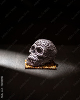 ornamented mexican skull made of chocolate gourmet, traditional gift for "dia de muertos" day of the death in Mexico culture named "calaverita de azucar" or "calaverita de chocolate"