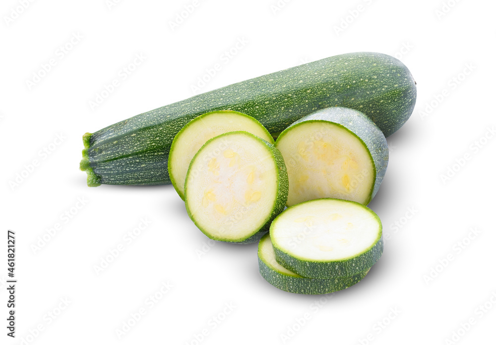fresh green zucchini with slice isolated on white background