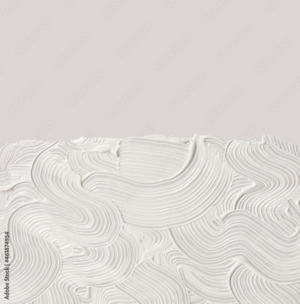 Abstract white color acrylic wave wall painting. Canvas vintage grunge texture background.