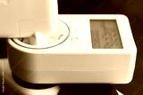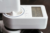 Electricity usage monitor measuring the standby power consumption of a laptop power supply.