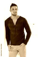Trendy man standing at home