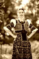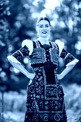 Young beautiful slovak woman in traditional dress. Slovak folklore