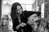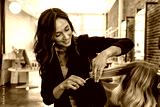 Hairstylist trimming hair of the customer in a beauty salon