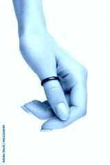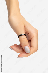 Womans hand with grown manicure on white background with copy space