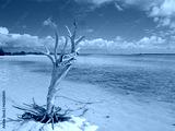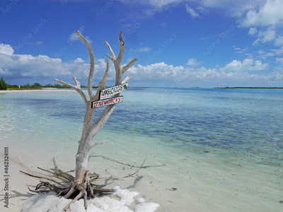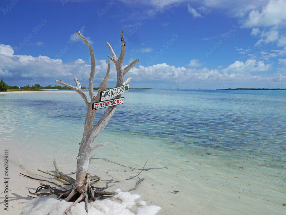 Caribbean Beach in Turks and Caicos: Little Water Cay (Iguana Island) with Turquoise Ocean, White Sand and Dead White Tree