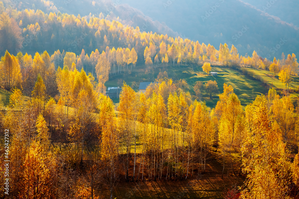 Incredible autumn landscape in sunny day. Location place of Carpathian mountains, Ukraine, Europe.