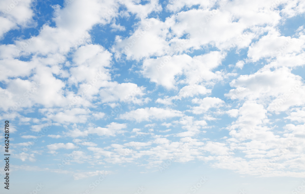 Captivating blue sky with white fluffy clouds in sunny day.