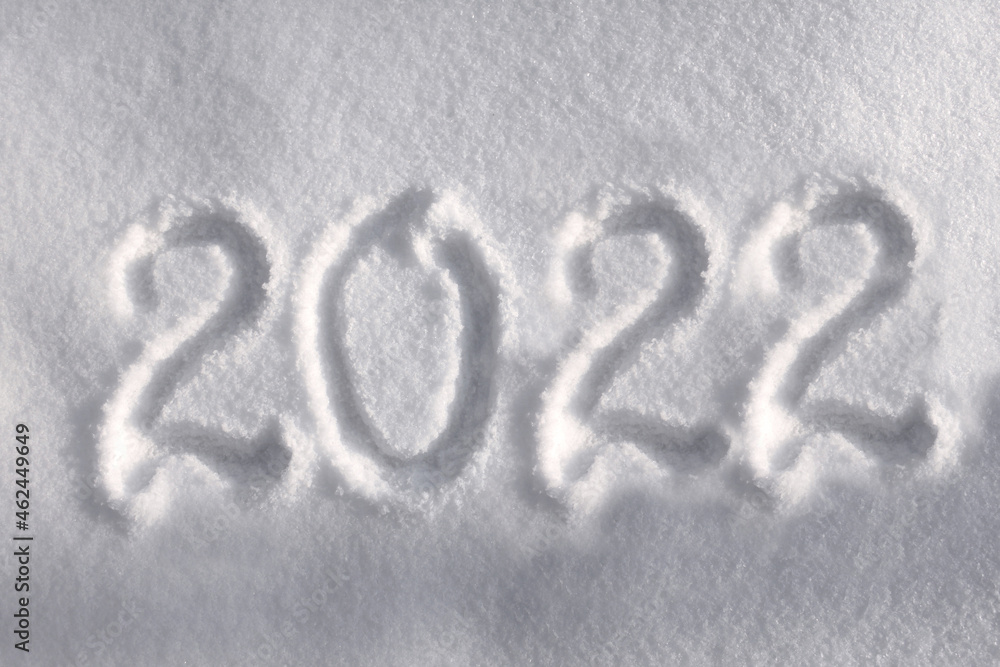 The inscription 2022 on snow as new year background for new year card or new year greetings or new year poster