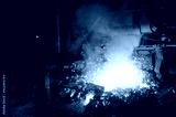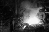 Blast furnace, cast iron production. Metal poured out of the metallurgical furnace