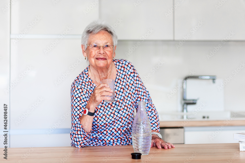 Senior woman with glass of water .