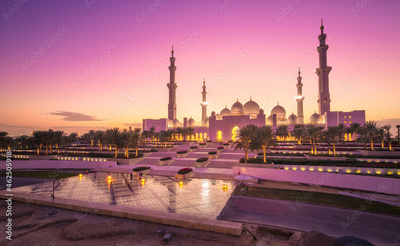 Sheikh Zayed Grand Mosque at sunset Abu-Dhabi, UAE