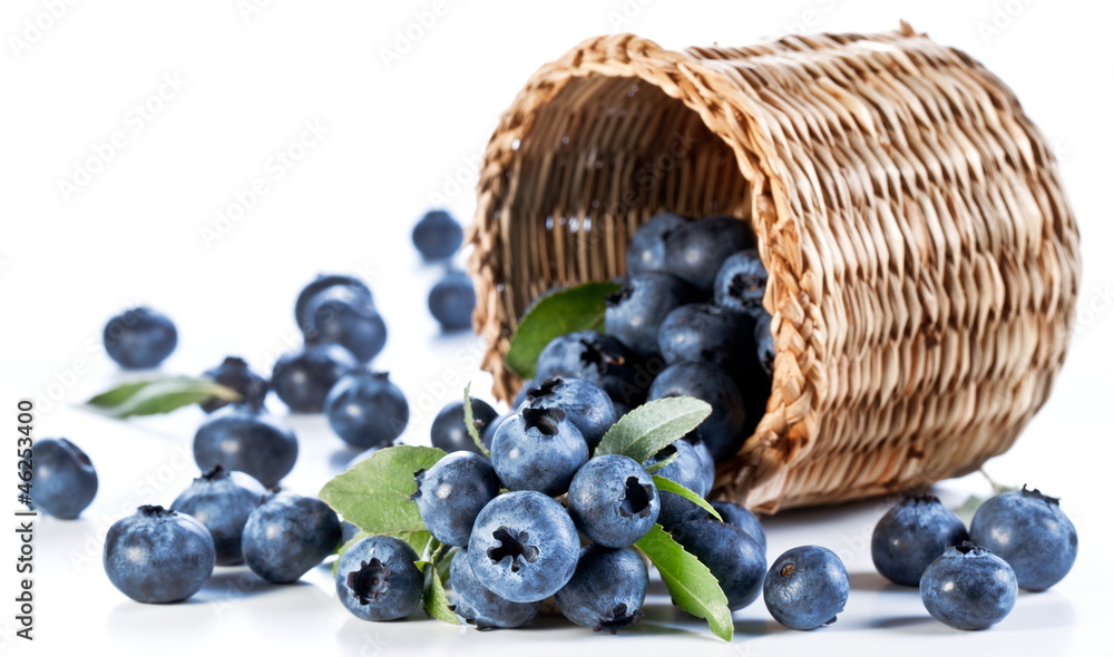 Blueberries fall of the basket.