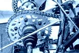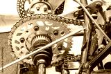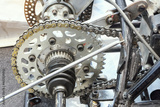 Sprockets rear derailleur on motorcycle tricycle close-up
