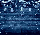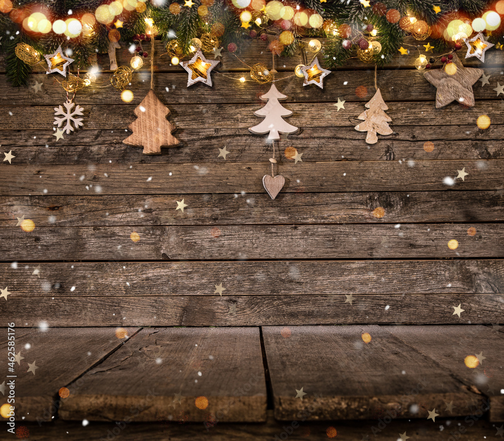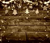 Christmas decoration on wooden background, lots of copy space for product or text.