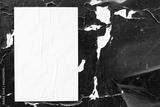 Closeup of colorful messy painted urban wall texture with wrinkled glued poster template . Modern mockup for design presentation. Creative urban city background.