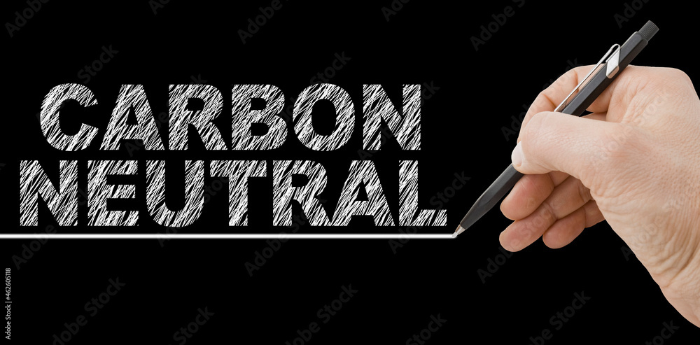 Hand is writing Carbon Neutral text - CO2 neutrality concept against a black background