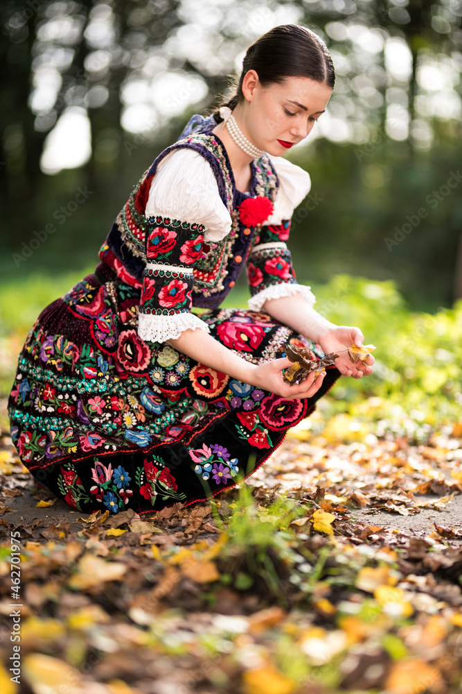 Belle jeune femme slovaque en costume traditionnel. folklore slovaque