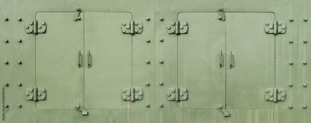 Green heavy armoured steel door