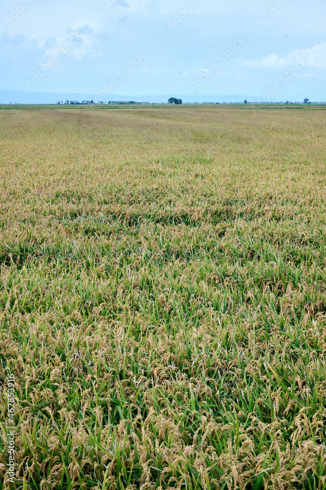 Rice plant field grows and produces grains in paddy fields, Vertical shot