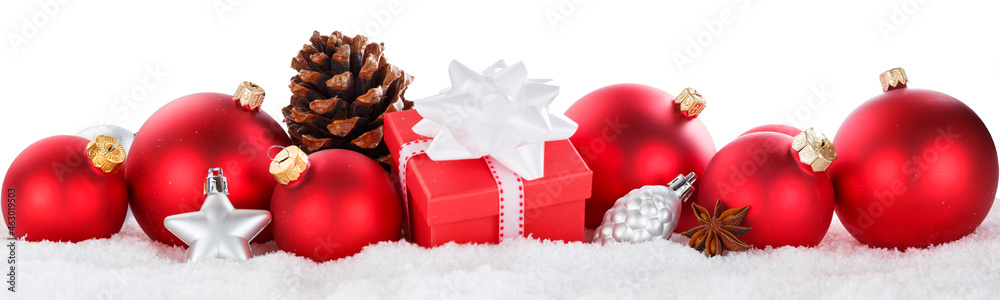 Christmas balls baubles decoration gift present ornaments banner isolated on white