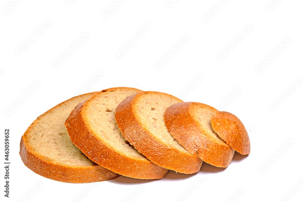 Brot in Scheiben geschnitten vor weißem Hintergrund