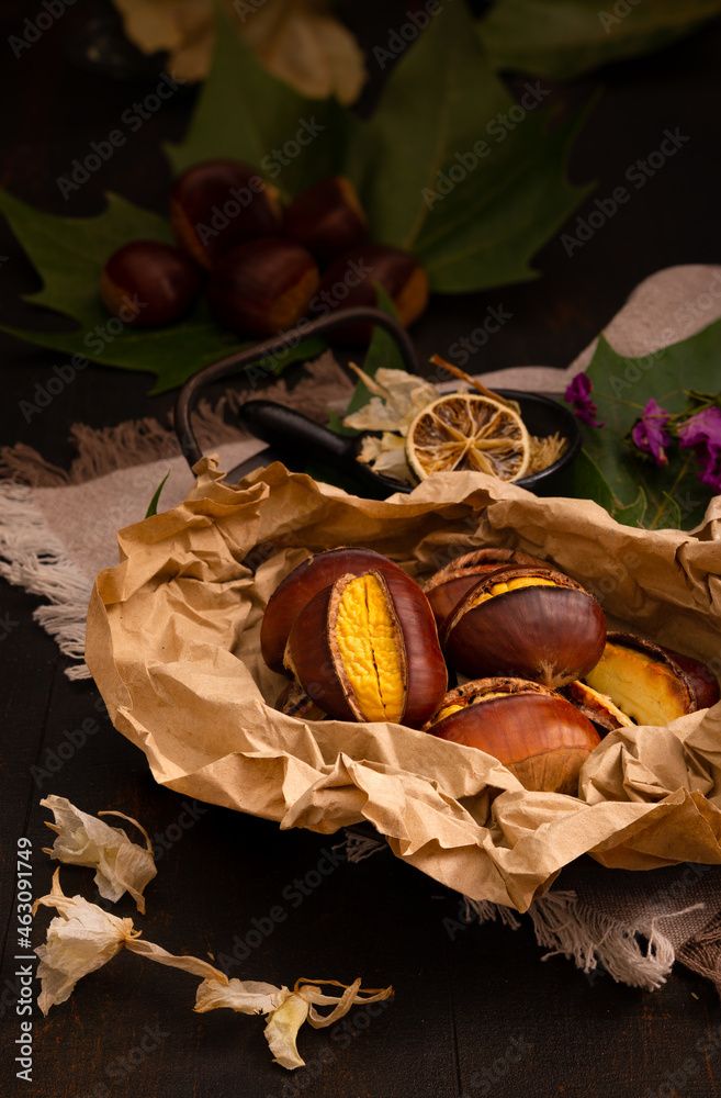 autumn background with Italian chestnuts
