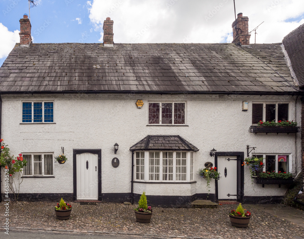 Traditional old cottages at Great Budworth Village, Pickmere, Knutsford, Cheshire, UK