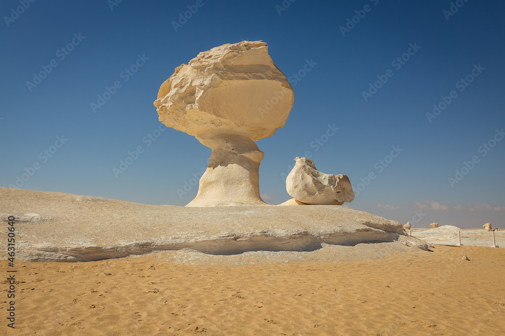 Figures of Mushroom and Chicken in the Black-White Desert in Bahariya. Egypt