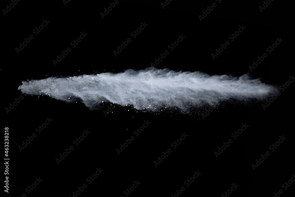 White powder explosion on black background. Colored cloud. Colorful dust explode. Paint Holi.