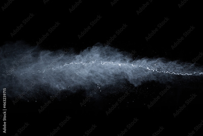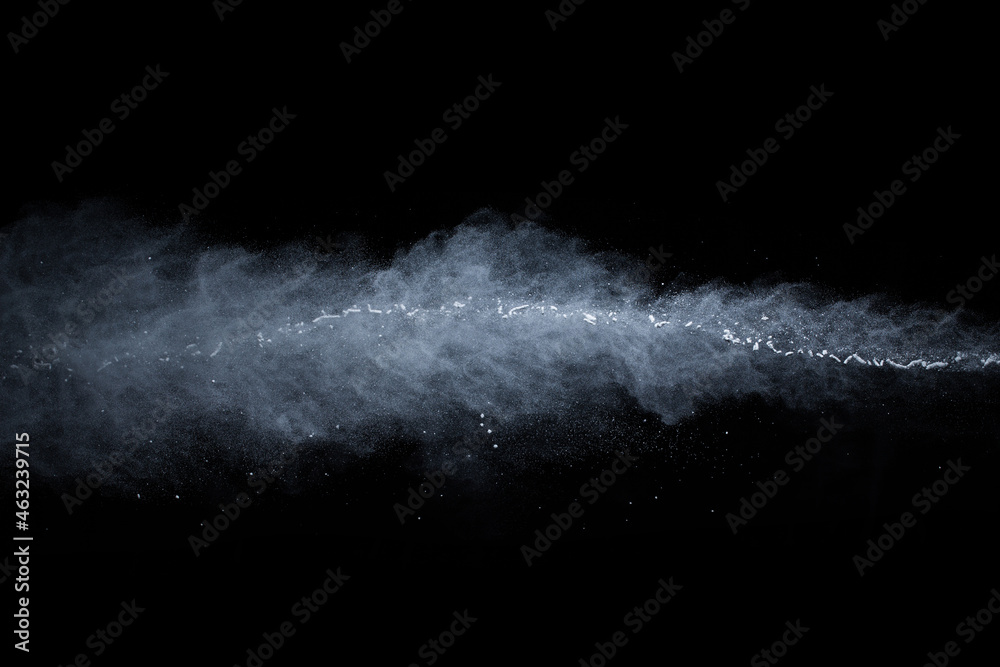 White powder explosion on black background. Colored cloud. Colorful dust explode. Paint Holi.