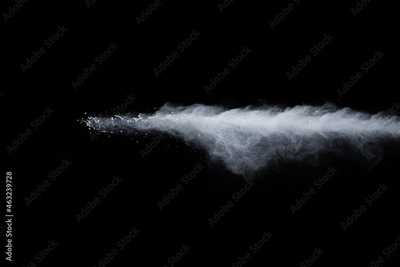 White powder explosion on black background. Colored cloud. Colorful dust explode. Paint Holi.