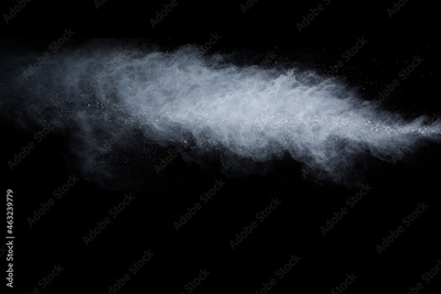 White powder explosion on black background. Colored cloud. Colorful dust explode. Paint Holi.