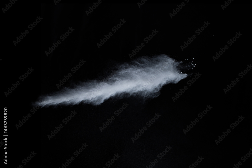 White powder explosion on black background. Colored cloud. Colorful dust explode. Paint Holi.