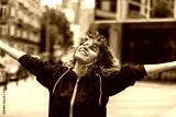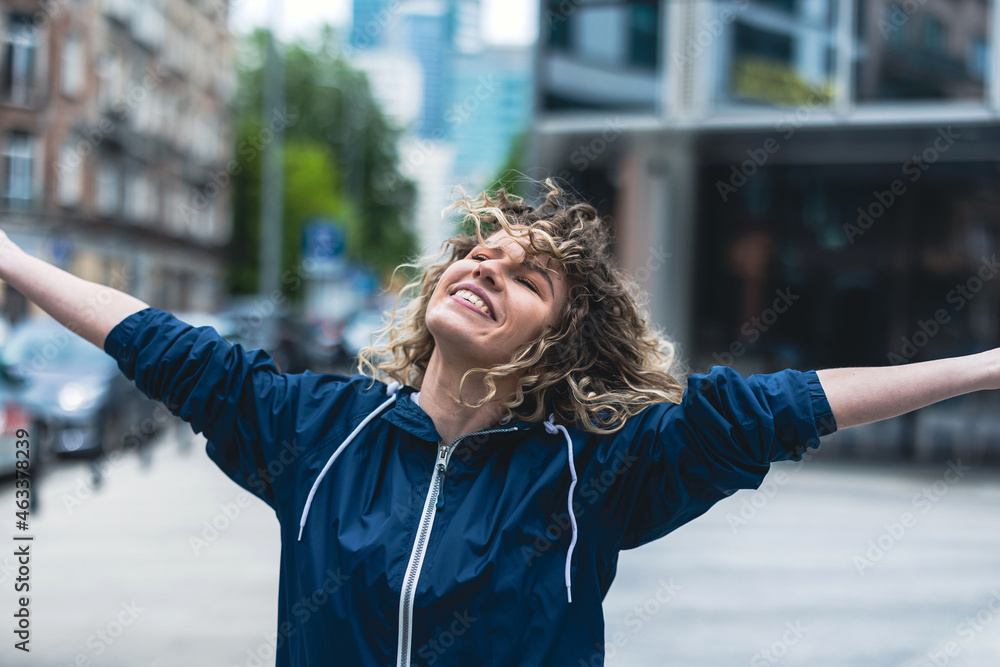 Young woman dancing in the city streets