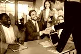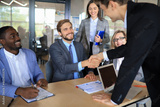 Business meeting associates shaking hands in office.
